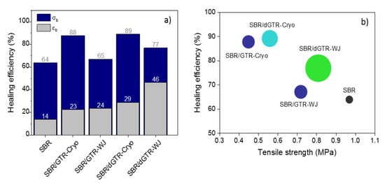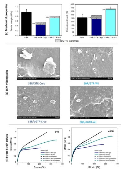- Hernández Santana, M.; Huete, M.; Lameda, P.; Araujo, J.; Verdejo, R.; López-Manchado, M.A. Design of a new generation of sustainable SBR compounds with good trade-off between mechanical properties and self-healing ability. Eur. Polym. J. 2018, 106, 273–283. [Google Scholar] [CrossRef]
