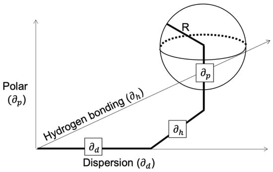 where the solubility parameters with the subscript s are for the solvent and p for the polymer, and the constant ‘4’ is derived from correlations. The proposed sphere is presented in Figure 1.