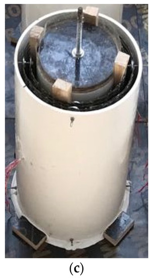 Preparation of formwork for UHPC tubes. (a) FRP grid; (b) Formwork with a PVC tube; (c) Fixed formwork.