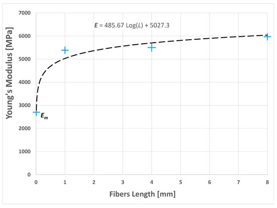 The graph of the numerical results shown in Figure 9 indicates the nonlinear growth of the stiffness of the composite as the length of the fibers increased.