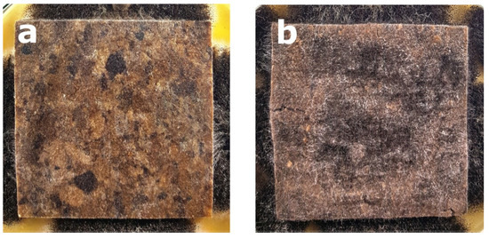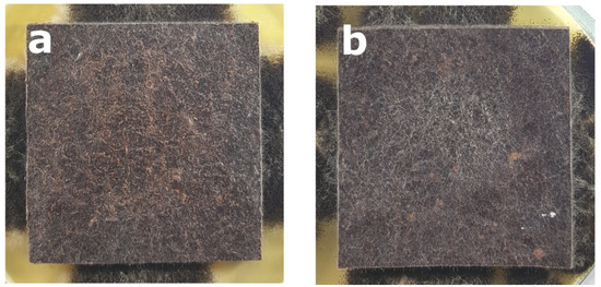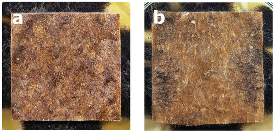- Secondly, the obtained granulate was used to produce plates with nominal dimensions 300 × 300 × 2.5 mm3. The process consisted of flat pressing in a mold, using a one-shelf press (AB AK Eriksson, Mariannelund, Sweden) at a temperature of 200 °C and a maximum unit pressing pressure pmax = 1.25 MPa (the pressure during pressing, along with the plasticization of the material, was gradually increased from 0 to pmax). The pressing time was 6 min. After hot pressing, the plates were cooled in the mold for 6 min in the cold press.