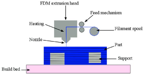 Fused deposition modeling (FDM) process (adapted with permission from reference []).