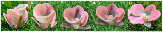 - Zarek, M.; Layani, M.; Eliazar, S.; Mansour, N.; Cooperstein, I.; Shukrun, E.; Szlar, A.; Cohn, D.; Magdassi, S. 4D printing shape memory polymers for dynamic jewellery and fashionwear. Virtual Phys. Prototyp. 2016, 11, 263–270. [Google Scholar] [CrossRef]