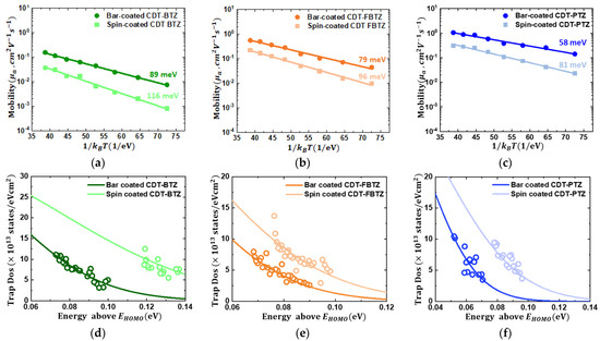 | CDT-FBTZ | Bar-coating | 4.9 | 0.28 | −28 | 79 | 3.1 × 1013 | 79 |