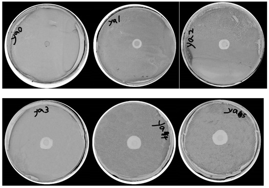 | The Content of Antibacterial Agent/% | The Antibacterial Circle Diameter/mm | |||