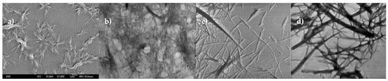 Leucine fumaramide 1a had a tendency to form spherulite-like gel networks in a polar DMF/H2O solvent mixture. The transmission electron microscopy (TEM) investigation provided detailed information on the self-assembly of 1a and showed that the gel network consisted mostly of fibers. The presence of large fiber bundles and tapes or twisted fiber or tapes can also be seen in Figure 9b–d. The gel was turbid and stable during the investigations.