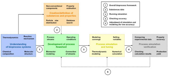 An illustration of an implemented step-wise procedure in the simulation and modeling of emerging bioprocesses.