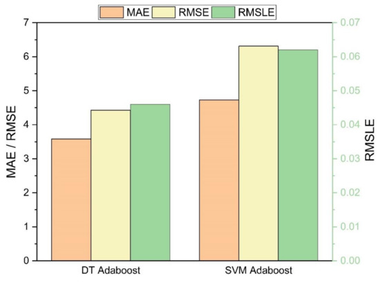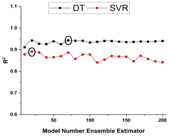 | Ensemble boosting | Compressive strength | Decision tree—Adaboost | (10, 20, 30, …, 200) | 70 | 0.94 |