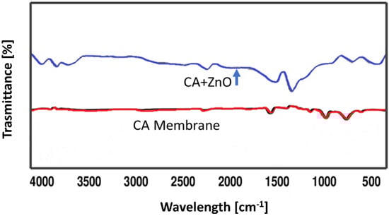 FTIR spectra of CA and CA-ZnO blended membrane.