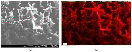 GNHC coating analysis: (a) SEM image; (b) elemental mapping of EDS.