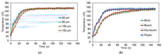 Moreover, the measurement of the core temperature inside the veneer package under given wood species and thickness of LDPE film was undertaken (Figure 3) according to the procedure described in our previous work [].