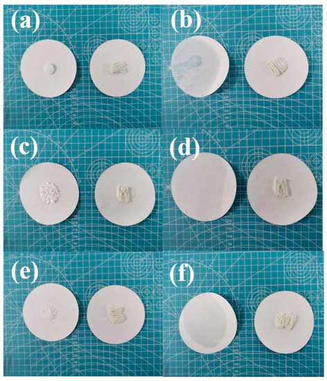 - Yan, Y.; Li, W.; Zhu, R.; Lin, C.; Hufenus, R. Flexible Phase Change Material Fiber: A Simple Route to Thermal Energy Control Textiles. Materials 2021, 14, 401. [Google Scholar] [CrossRef]