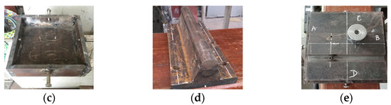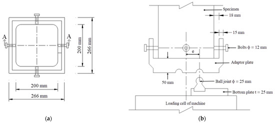 Setup of typical compression test: (a) Uniaxial loading; (b) Biaxial loading; (c) Adapter plate for uniaxial loading; (d) Ball joint for uniaxial loading; (e) Adapter plate and ball joint for biaxial loading.