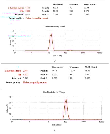 %Volume/size distribution of sonicated (a) GNFC/NaClO, (b) GNFC/NaOH, and (c) GNFC/H2SO4 using the particle size analysis (PSA).