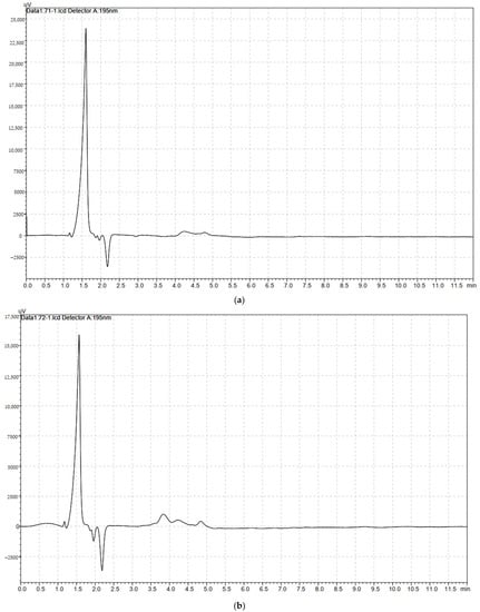 The nanocellulose samples prepared by the three methods were measured and compared with the Real Sample (RSNFC), shown in Figure 11a–d. They were found almost similar and at the same separation time.