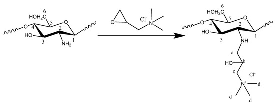 - Mu, X.; Yang, X.; Zhang, D.; Liu, C. Theoretical study of the reaction of chitosan monomer with 2,3-epoxypropyl-trimethyl quaternary ammonium chloride catalyzed by an imidazolium-based ionic liquid. Carbohyd. Polym. 2016, 146, 46–51. [Google Scholar] [CrossRef] [PubMed]