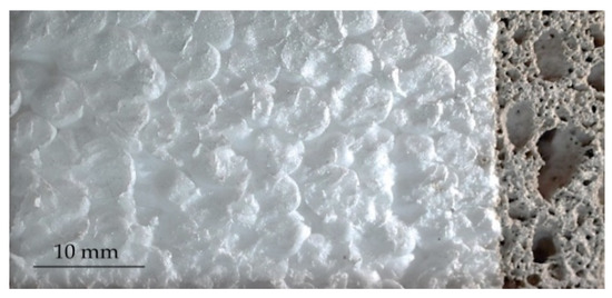 Foaming methods to reduce the geopolymer density have been investigated, as lightweight geopolymers are continuously being studied to improve the insulating properties [8]. The foaming process is achieved by combining the binder, composed of aluminosilicate, and an aqueous alkaline solution with a metal powder (aluminum, or other metals). The result is that a hydrogen-rich gas is generated and released during metal oxidation [9,10,11,12,13,14], leading to the formation of a porous structure that is cured [15,16,17,18] and stabilized with solid particles [19]. The stabilization facilitates the dispersion of the hydrogen gas in tiny bubbles and increases the strength of the thin films between them [20,21,22]. Foams resemble condensed emulsions in their structure, but the dispersed phase is a gas, not a liquid [23,24]. Definitively, the porous structure of geopolymer foam is a modern technical achievement widely used to produce low-density geopolymers, which ensures a porosity pattern [25,26,27,28].