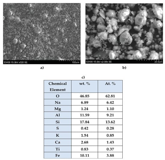 - the appearance of new bands from 1115 (of high intensity) and 537 cm−1 were assigned to silica and other oxides from FA, as seen in Figure 3. These new bands’ appearance corresponds to the possible chemical interactions between the matrix and the prevalent silica compounds from fly ash. These results support the mechanical test results, which indicated an increase in the mechanical strength of the composite with fly ash compared to those without fly ash.