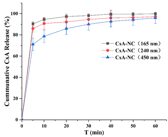 Dissolution profiles of CsA-NCs in HBSS containing 0.01% SDS. (n = 3, means ± SD).