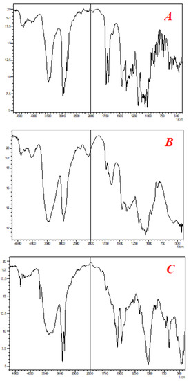 FTIR Spectra of (A) clarithromycin, (B) HPMC, and (C) sustained-release matrix tablets of clarithromycin.