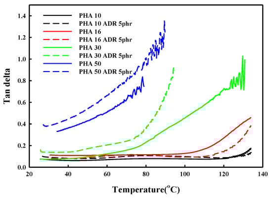 The tan δ of P(3HB-co-4HB) was evaluated by measuring 1 mm × 2.5 mm sheets on a dynamic mechanical thermal analyzer (TA, DMA Q800/2980, New Castle, DE, USA) in the 30–140 °C range, at the oscillation frequency of 1 MHz.