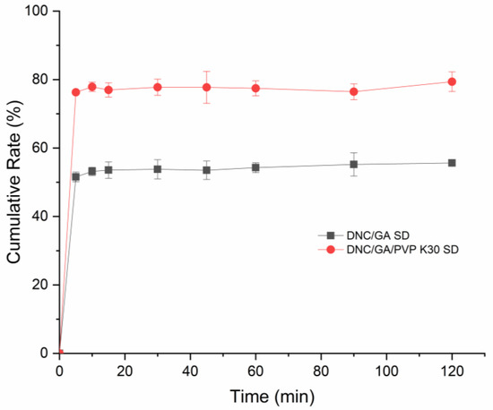 The cumulative release of DNC/GA SD and DNC/GA/PVP K30 SD.