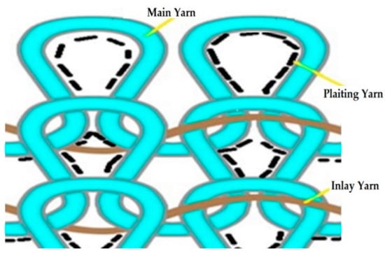 - Yu, A.; Sukigara, S.; Takeuchi, S. Effect of inlaid elastic yarns and inlay pattern on physical properties and compression behaviour of weft-knitted spacer fabric. J. Ind. Text. 2020, 1528083720947740. [Google Scholar] [CrossRef]