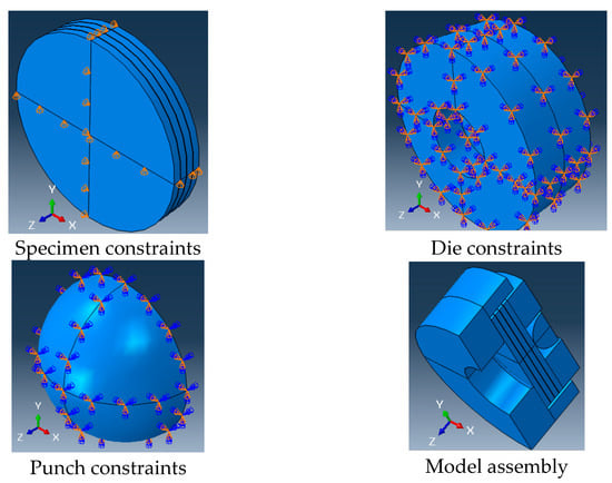 - Cheng, Z.; Sun, J.; Tai, P.; Zhang, L.; Wei, Y.; Chang, H.; Thuku, R.; Gichuhi, K.M. Comparative Study between Small Punch Tests and Finite Element Analysis of Miniature Steel Specimens. J. Mater. Eng. Perform. 2021, 30, 9094–9107. [Google Scholar] [CrossRef]