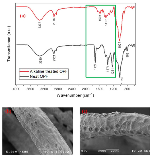 - Oushabi, A.; Sair, S.; Hassani, F.O.; Abboud, Y.; Tanane, O.; el Bouari, A. The effect of alkali treatment on mechanical, morphological and thermal properties of date palm fibers (DPFs): Study of the interface of DPF–Polyurethane composite. S. Afr. J. Chem. Eng. 2017, 23, 116–123. [Google Scholar] [CrossRef]