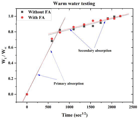 2.5. Moisture Movement, Water Absorption, and Warm Water Testing