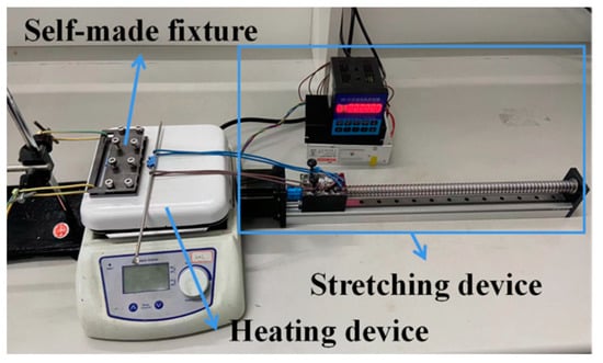 The shape memory behavior was tested, and the sample was first clipped in a self-made mold and heated to 120 °C for 7 min until the strain was 100%. After the sample was completely cooled, its fixed length was measured. After that, the sample was put in an oven and heated from 30 to 120 °C. After waiting for 10 min at intervals of 10 °C, the sample recovery was measured and its shape recovery rate was calculated.