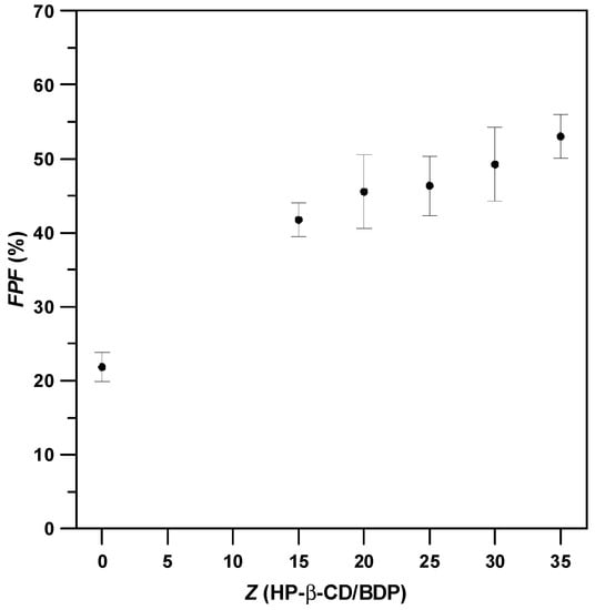 3.4. In Vitro Dissolution Performance of the Drug–HP-β-CD Formulation