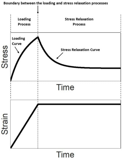 There are two sequential processes (the term “process” here can be interpreted as the action performed on the material in the test) in the stress relaxation test: loading process and stress relaxation process (Figure 2).