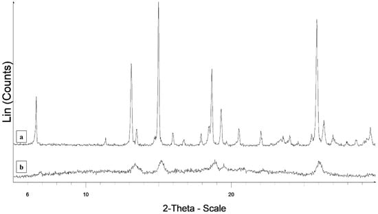 XRPD measurements were performed by a D5005 Bruker diffractometer (Malvern Panalytical, Karlsruhe, Germany) (CuKα radiation, λ (Kα1) = 1.54056 Å; voltage of 40 kV and current of 40 mA) equipped with a θ-θ vertical goniometer, Ni filter, monochromator and scintillator counter. The patterns were recorded at room temperature in step scan mode (step size: 0.02°, counting time: 3 s per step) in the 3 < 2 θ° < 30 angular range.