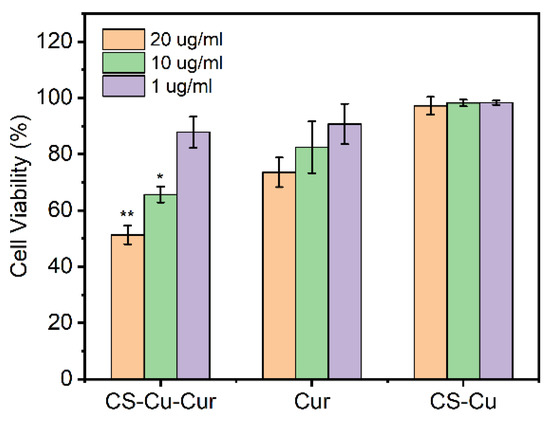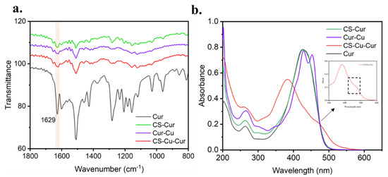 3.1. Preparation and Characteristic of Cur-Loaded CS Nanocomplex