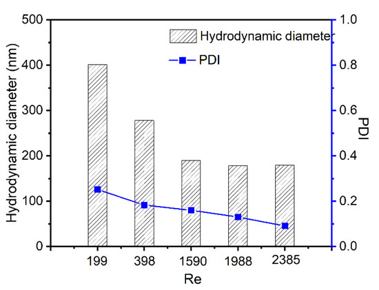 3.4. Size Control of Cur-Loaded Particles by Reynolds Number