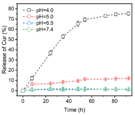 3.5. Profiles of Curcumin Release at Different pH
