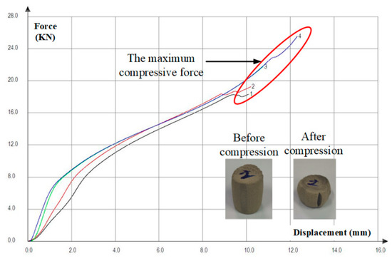 Figure 3 depicts the variation curve of compressive force of SiC/PA12 composites during the mechanical tests. As can be seen from Figure 2, the crack is almost parallel to the axis of the cylindrical specimen. The calculated t compressive strength of the composites is 119.42 Mpa, and that of the matrix is 110 Mpa. It clearly shows that the SiC/PA12 composites exhibits an improved compressive strength compared with the pure PA12.