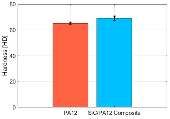 The shore D hardness of pure PA12 and SiC/PA12 composites.
