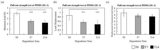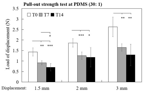 3.2. In Vitro Degradation Profile of Barbed Suture Samples Evaluated by Pull-Out Test Using PDMS 30:1