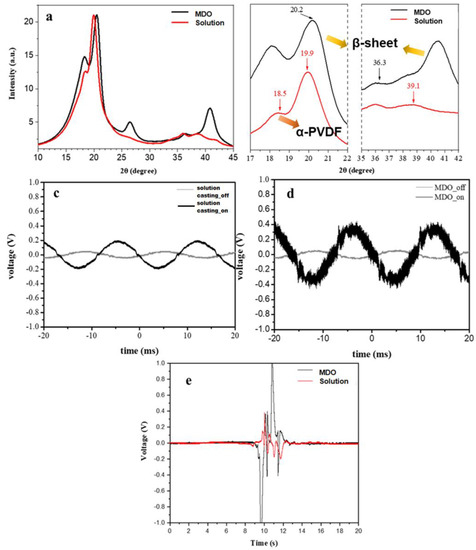 - Raj, M.J.; Prashanth, N.; Abisegapriyan, K.S.; Gaurav, K.; Kim, S.J. Method for fabricating highly crystalline polyvinylidene fluoride for piezoelectric energy-harvesting and vibration sensor applications. Sustain. Energy Fuels 2022, 6, 674–681. [Google Scholar]
