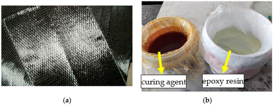 Carbon fiber sheet and epoxy resin adhesive and: (a) carbon fiber sheet and (b) epoxy resin adhesive.