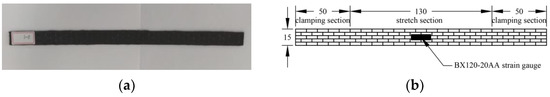 The mix ratio of epoxy resin and curing agent is 2:1, and curing for 7 days at room temperature of 25 °C. The epoxy specimen size and strain gauge layout point are shown in Figure 2. Similarly, the carbon fiber is cut into 250 mm in length and 200 mm in width, then brushed with epoxy resin adhesive on both sides to constitute a CFRP sheet, as shown in Figure 3.