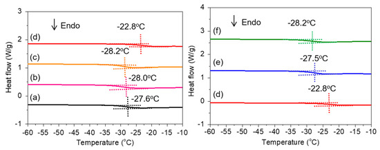 DSC heating curves of PGS (a), PGSE1 (b), PGSE2 (c), PGSE3 (d), PGSE-B (e), and PGSE-Z (f).