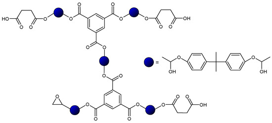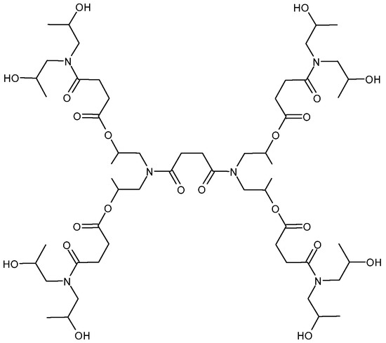 HBPs are a subclass of dendritic polymers that can be effectively used as modifiers of thermosetting polymers because of their interesting properties resulting from the branched architecture and a high number of functional groups [4]. They have a highly randomly branched structure which makes them less viscous than their linear counterparts of the same molecular weight because of the absence of chain entanglements [5,6]. HBPs have a high number of reactive end groups that can be modified to enhance the physical compatibility between the HBP and the matrix or to become covalently attached to the network. The properties of the final materials can be tailored as a function of HBPs’ chemical structure, average molecular weight, degree of branching, or type of final functional groups. The tailored structure of HBPs allows the enhancement of the mechanical dielectric, and optical properties of the final materials, their thermal degradability, or fire retardancy among others [7].