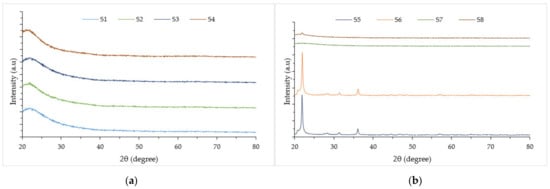 Table 4 shows the percentage elements for unleached and HCl leached RH with a control combustion of 1000 °C. Based on the XRF results, a higher content of SiO2 is found in both leached RH than the unleached RH. The highest concentration of SiO2 content was found in sample S8 with the SiO2 concentration of 92.10% wt. The drop in the level of K2O at 1000 °C silica lead to the formation of potassium polysilicate (K2SiO3) with residual carbon, hence the available K2O is reduced. The incineration time did not substantially increase the SiO2 composition for unleached samples. Instead, the percentage of SiO2 decreased as the incineration time increased from 1 h to 2 h. This result is supported by Xu et al., (2018) [], who highlighted the transformation phenomenon of silica from an amorphous stage to crystalline related to the existence of the minor elements in RHA such as Na, K, Mg, and Ca, and thus leading to the decreased transformation silica temperature [].