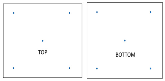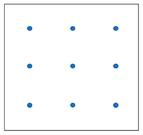Scheme of selected points (blue dots) for ATR-FTIR analysis for evaluating coating homogeneity.