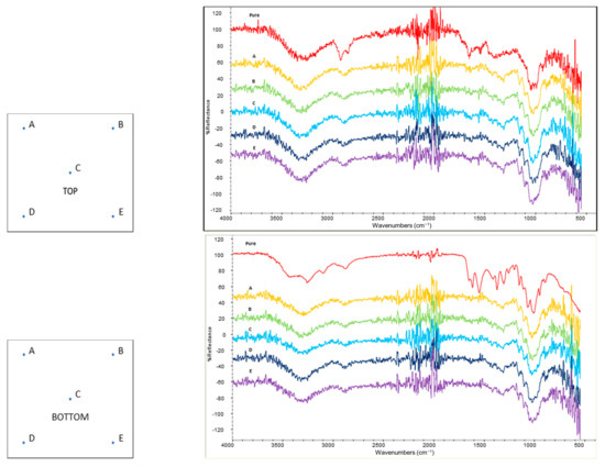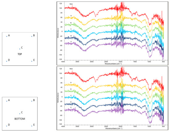 The homogeneity of treated tissues was evaluated by performing five ATR-FTIR spectra on each side (selected points are reported in Figure 2) by using the same conditions of extracted active molecules described in Section 2.2.