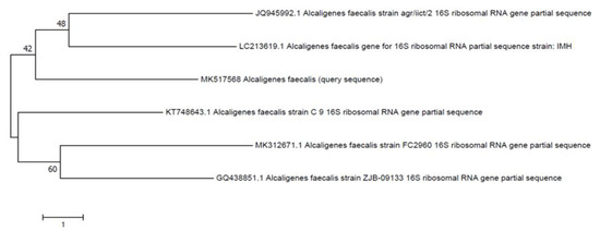 Neighbor joining tree of Alcaligenes faecalis (MK517568).