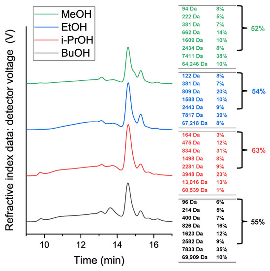 | i-PrOH | 11.3 | 22.3 | 13.8 | 13.9 |